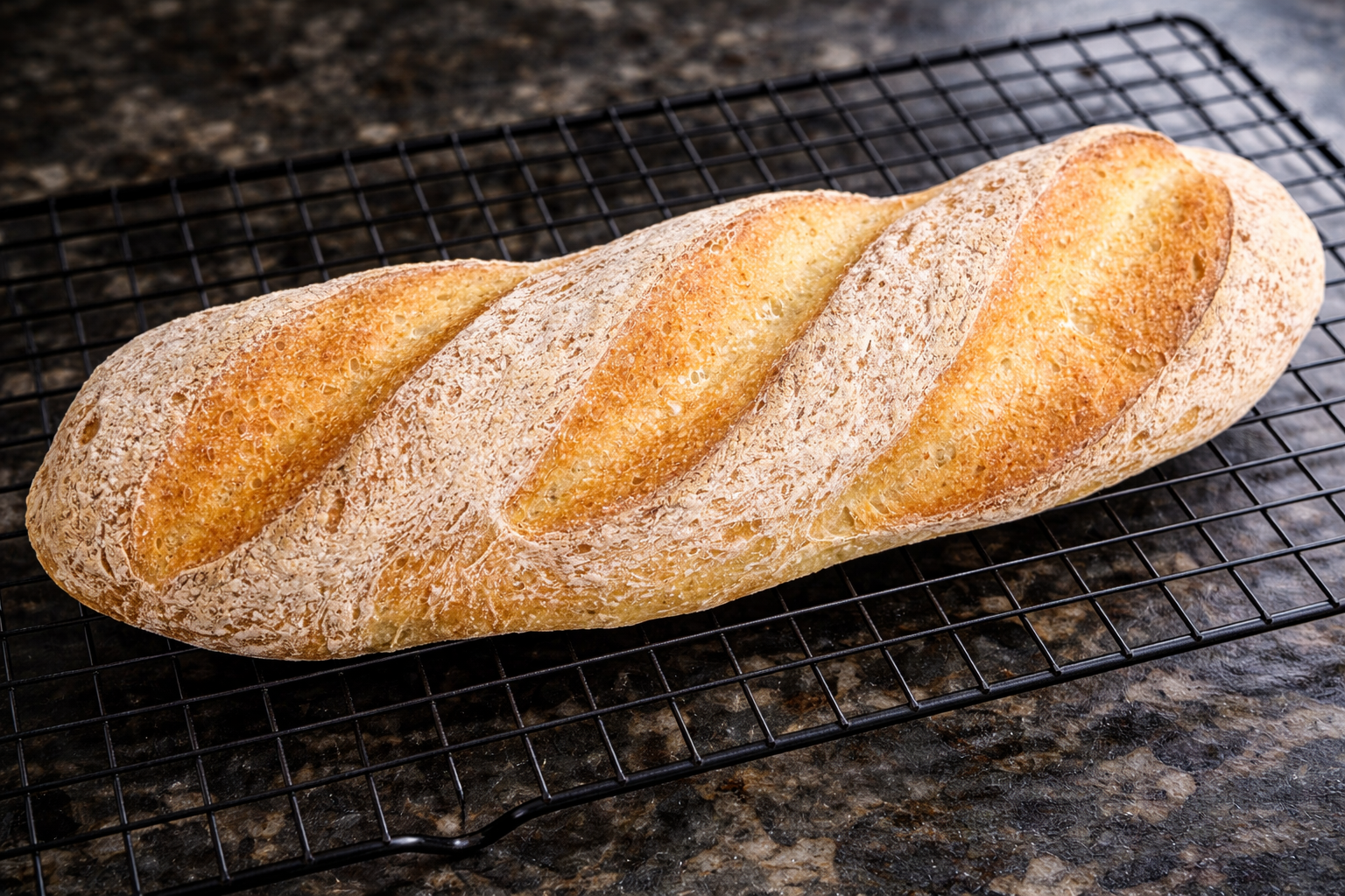 Fresh-baked gluten-free baguette with a crunchy crust and soft center — a versatile favorite for meals, sharing, or savoring on its own.