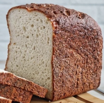A hearty gluten-free sourdough sandwich bread with a golden, rustic crust and soft, airy crumb—perfectly balanced with a mild tang for classic, flavorful slices.
