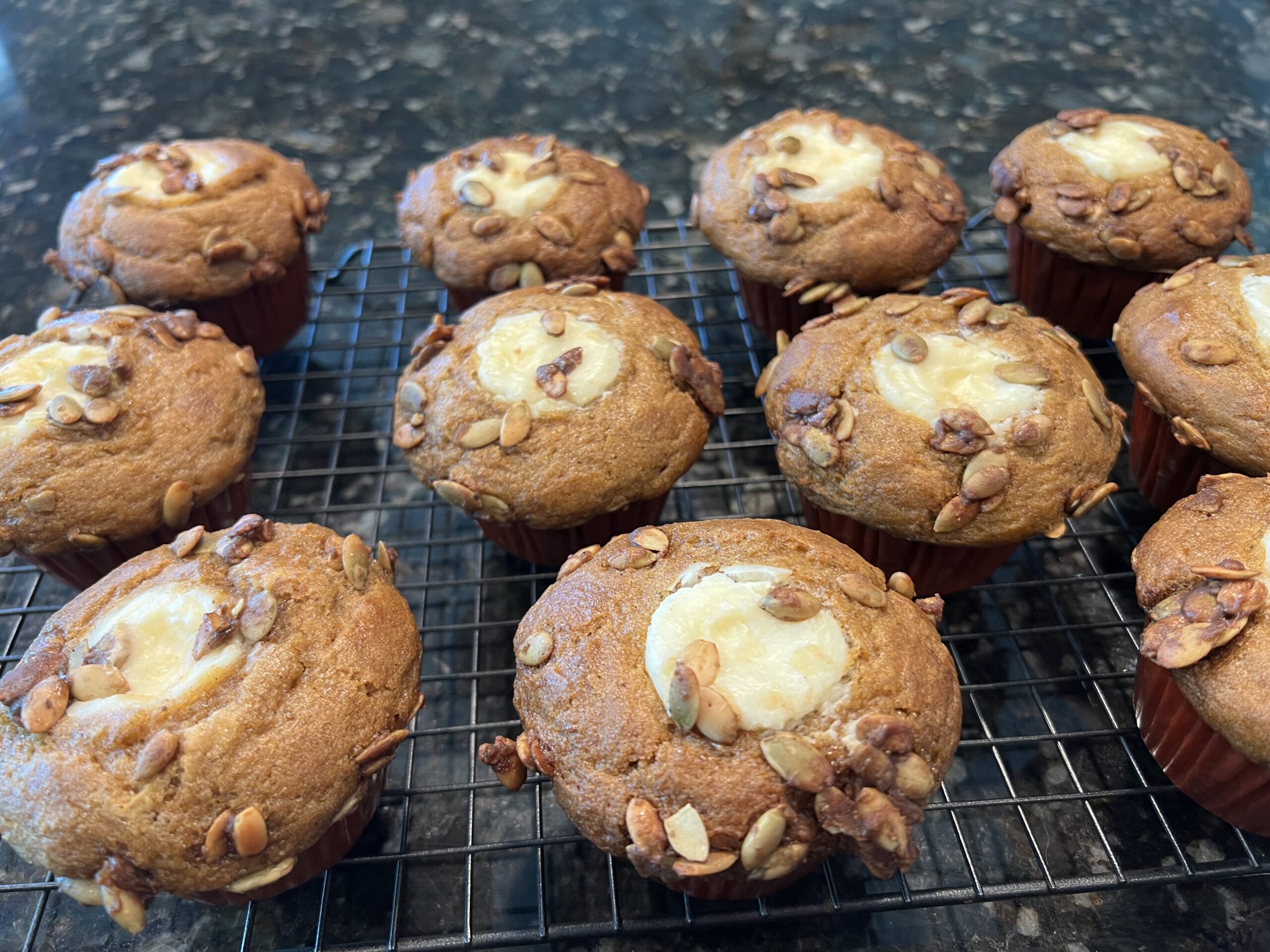 Moist pumpkin muffins swirled with rich, tangy cheesecake and topped with a crunchy pumpkin seed praline. Â These gluten free muffins blend cozy fall flavors with irresistible texture in every bite. Â These are sold in a 4 pack.