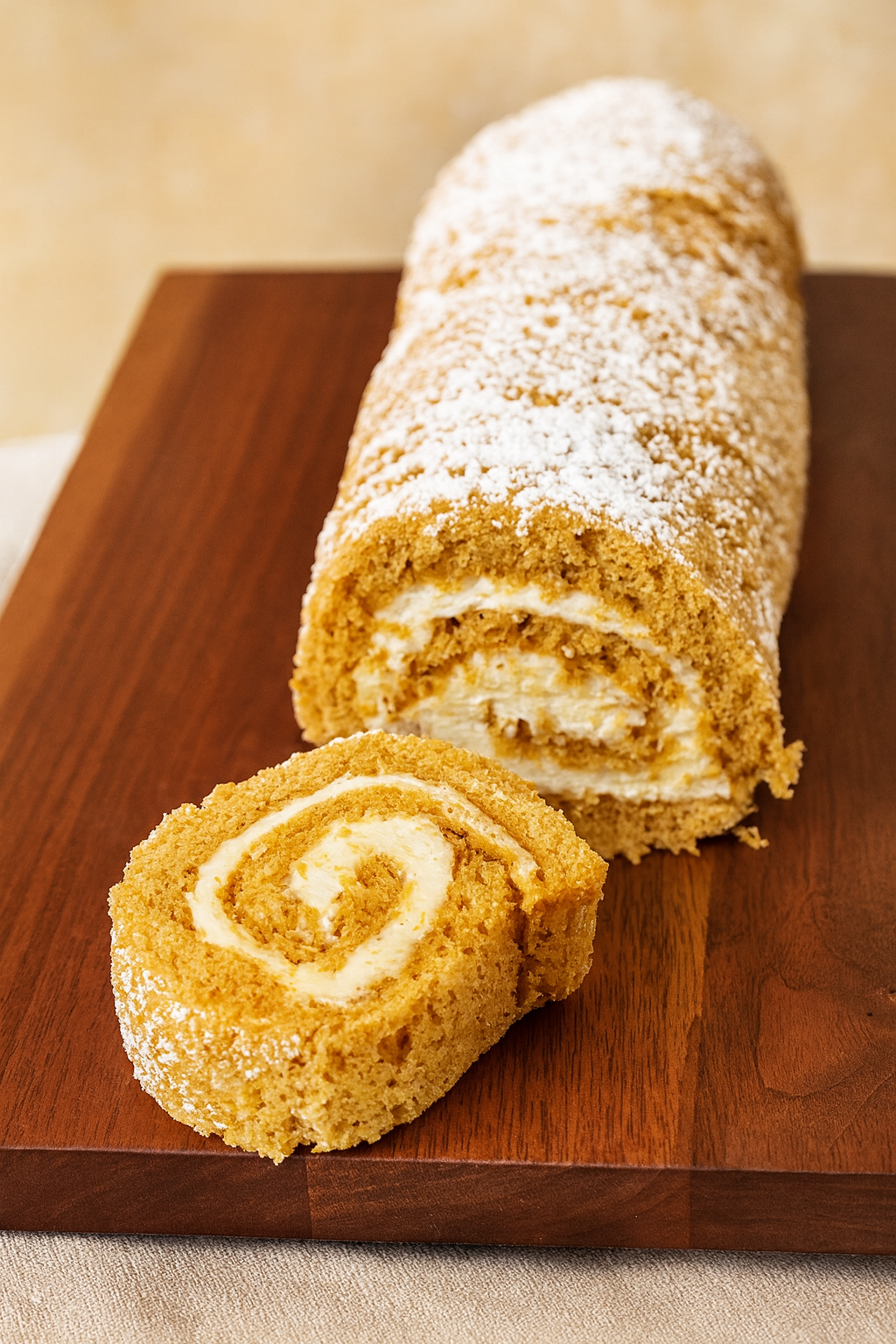 A soft pumpkin filled roll with creamy cheesecake filling and dusted with powdered sugar. Homemade comfort!